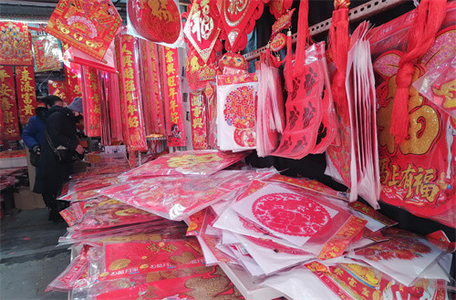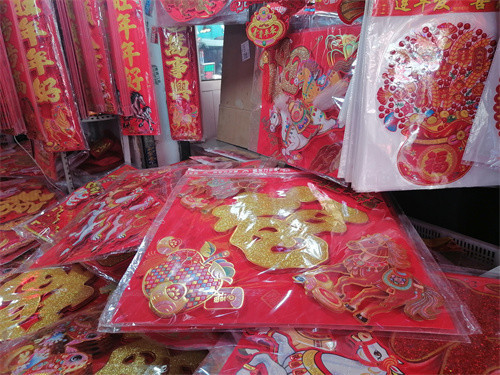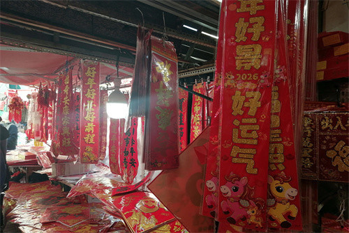 “马上有福”“马上快乐”“马上来财”……春节的脚步越来越近,年货市场也热闹起来,马年生肖小商品、春联福字、灯笼等传统商品琳琅满目,吸引众多市民驻足选购。除了传统的纸质印刷品,带有生肖元素、卡通图案、绒布材质、立体浮雕、缎面祥云等创新设计的福字和窗花也颇受青睐,尤其是融合了现代设计感的“文创春联”,成为年轻人装点家居、传递祝福的新选择。